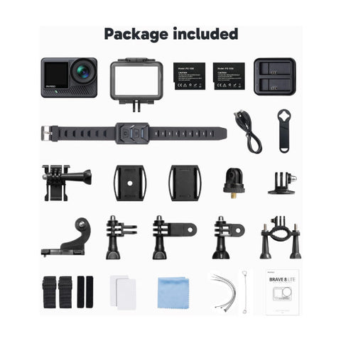 | Model Name | BRAVE 8 Lite Action Camera 2 Batteries + Dual Charger + Remote |